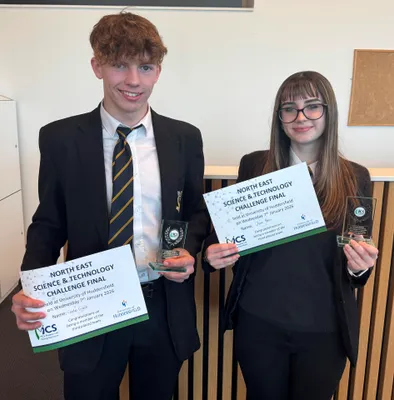 Two students have secured third place in the North East final of a national Science and Technology Challenge, held recently at the University of Huddersfield.