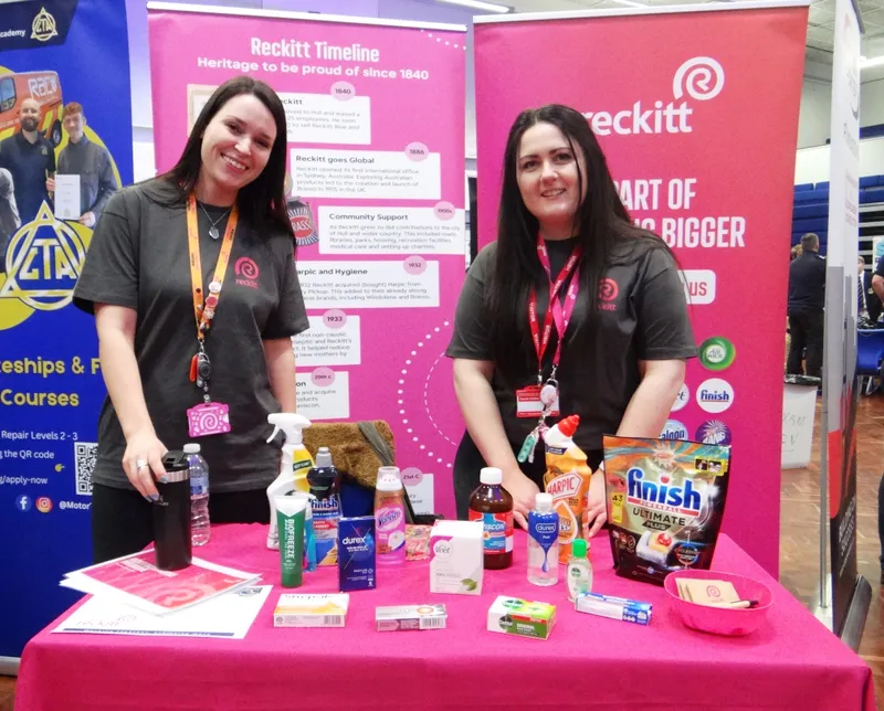 ABOVE: Dr Sammi Iveson and Rebecca Bosman, both alumni of Withernsea High School, returned with Reckitt to share their career journeys and inspire the next generation.