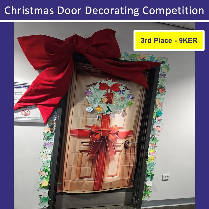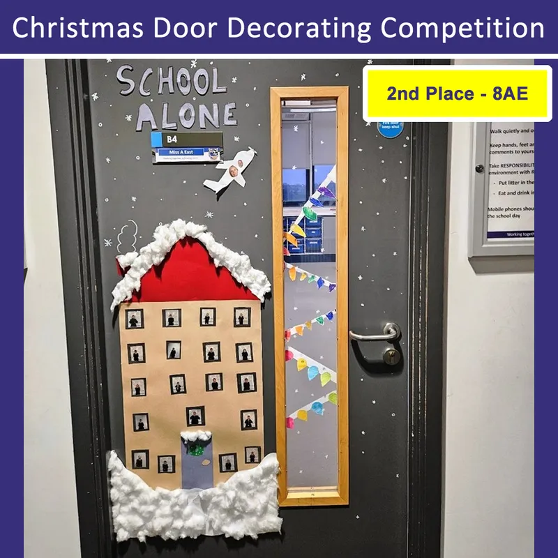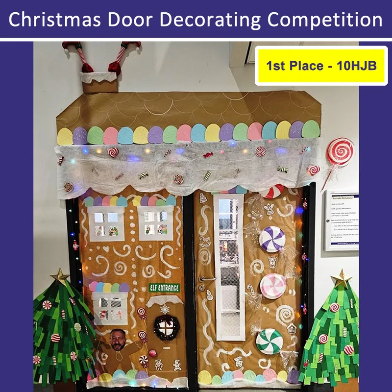 This year, a total of 29 doors were decorated, with contributions from both form groups and staff teams. Voting was held on Monday, 15th, and Tuesday, 16th December. All students and staff were eligible to vote, although they could not vote for their own door. The doors receiving the highest number of votes were 10HJB (G14) in first place, 8AE (B4) in second place, and a tie for third place between 9KHO (G9) and 9KER (B5).