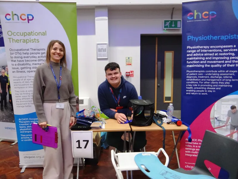 ABOVE: School careers leader Viki Foster with specialist occupational therapist and former student James Medcalf, who attended the event on behalf of the City Health Care Partnership.